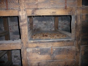 Zu dem Zeitpunkt sah ich auch zum ersten Mal die eigentliche Darre, die fast originalgetreu erhalten geblieben ist. Der gesamte Aufbau hat mich schon sehr erstaunt. Bis dahin hatte ich geglaubt, die Zapfen seien einfach auf dem Boden getrocknet worden, weil durch die Öffnungen im Dach immer der Wind streichen konnte. In der Zwischenzeit weiß ich es besser, denn dank der Unterstützung durch die Leiterin der Forstsamendarre Sachsen-Anhalts in Annaburg konnte ich mein Wissen um den Darreprozess erheblich erweitern. In der Zwischenzeit wurden einige Informationstafeln angefertigt, auf denen sich jeder Besucher über den Darreprozess informieren kann. Dieser Teil ist nun das zweite Denkmal, das als technisches ebenfalls unter Denkmalschutz steht.
